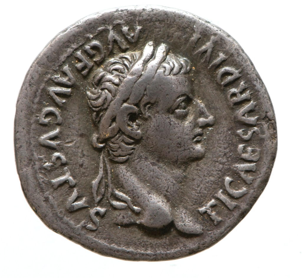 The image is a denarius from the reign of Emperor Tiberius. Photographed by: York Museums Trust Staff – This file has been provided by York Museums Trust as part of a GLAMwiki partnership. This tag does not indicate the copyright status of the attached work. A normal copyright tag is still required. See Commons:Licensing., CC BY-SA 4.0, https://commons.wikimedia.org/w/index.php?curid=48143736.