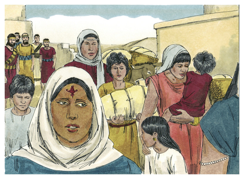 The image is an illustration of Ezra 10 by Jim Padgett (1984), published by Distant Shores Media/Sweet Publishing, CC BY-SA 3.0, https://commons.wikimedia.org/w/index.php?curid=18884444. I was somewhat startled to find this image, which captures some – not nearly all – of the heartbreak of Ezra 10.