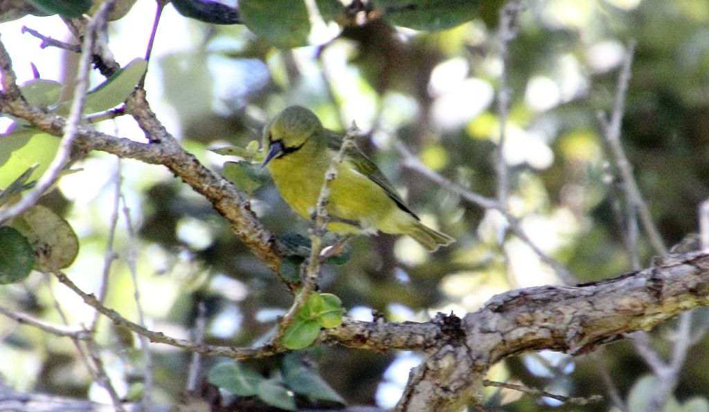 I told a story a while ago about an i’iwi trying to protect an ohi’a tree and you might remember that it didn’t work. And I’ve told a story about an i’iwi trying to keep other birds away from a tree in blossom and how an ‘amakihi found a way that other birds could eat there, too. Those trees were in full blossom, with the scent of nectar drawing the honeyeaters of the forest in from all around. This tree, however, the one that the ‘amakihi chose as his? It was not at all tall, and barely had a flower on it. Nobody was terribly interested.