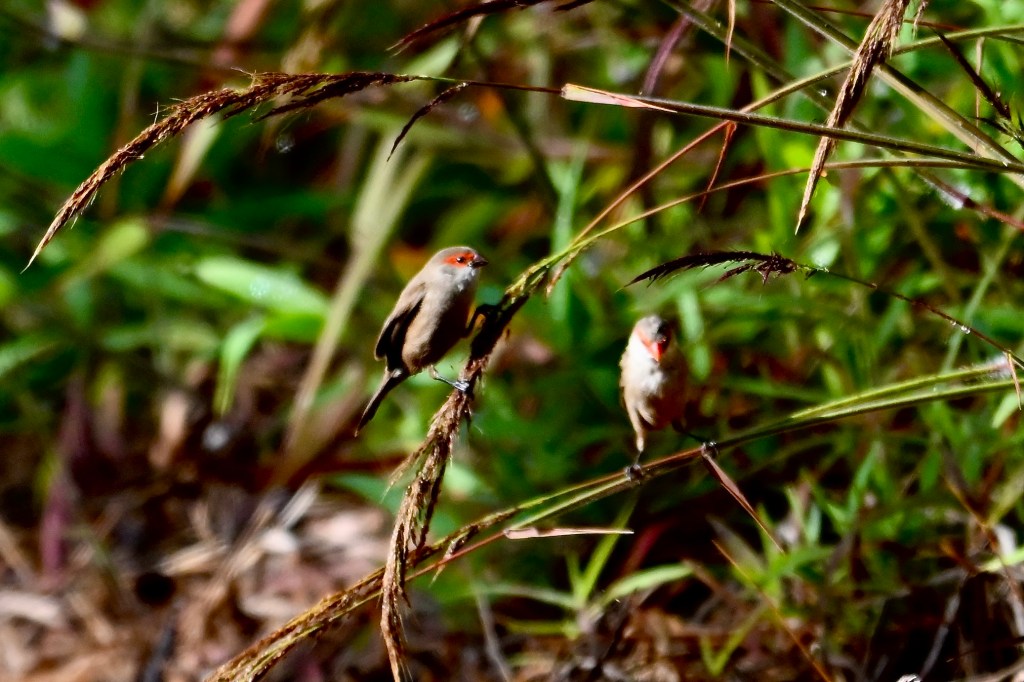 Waxbills have the same problem. When they’ve eaten the seeds in this plot of grass, how do they decide where to go next?