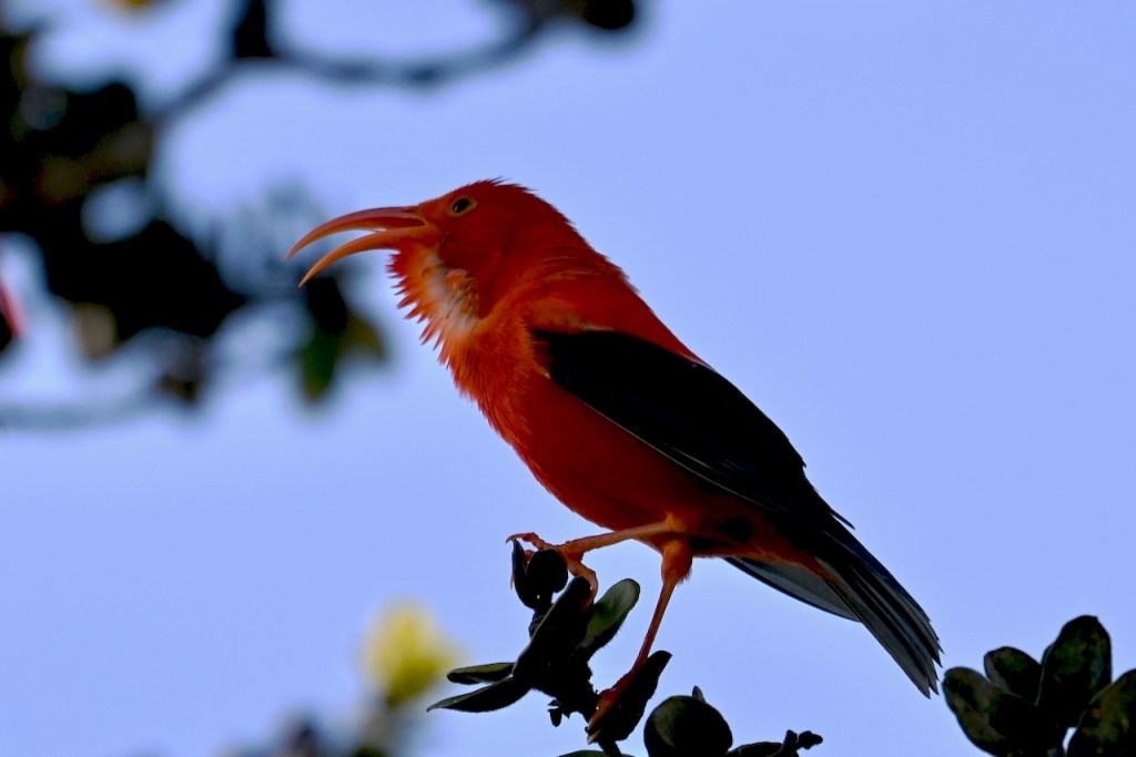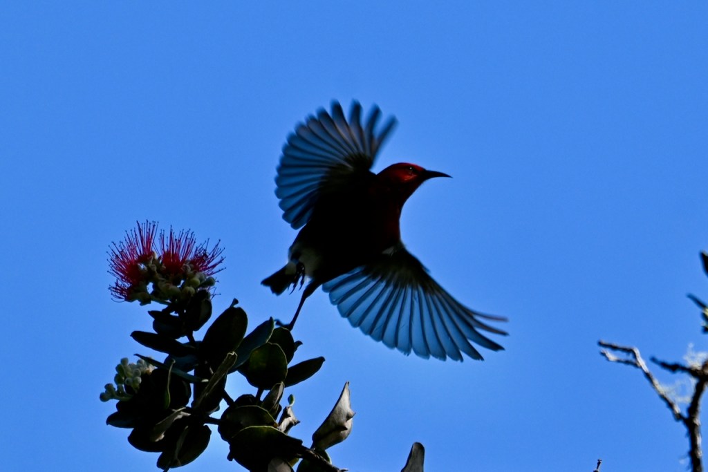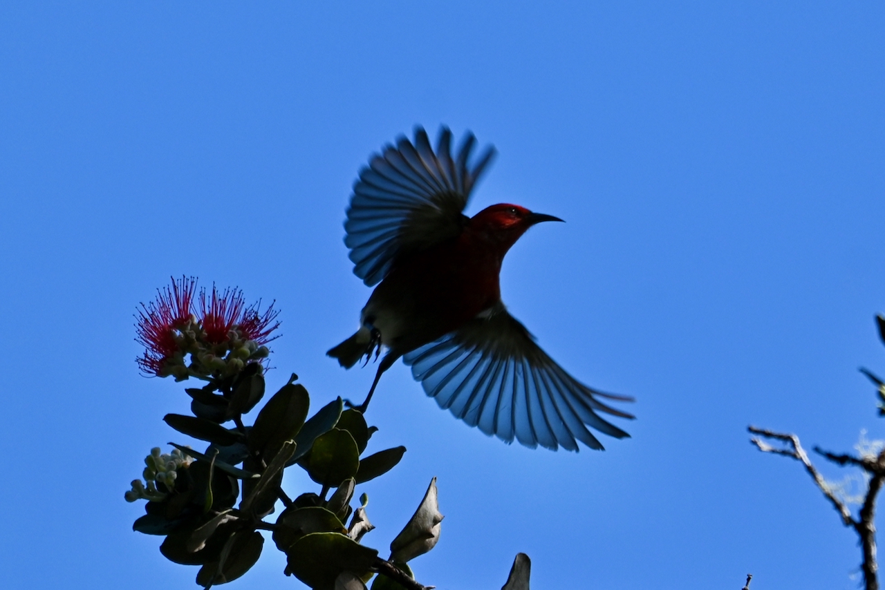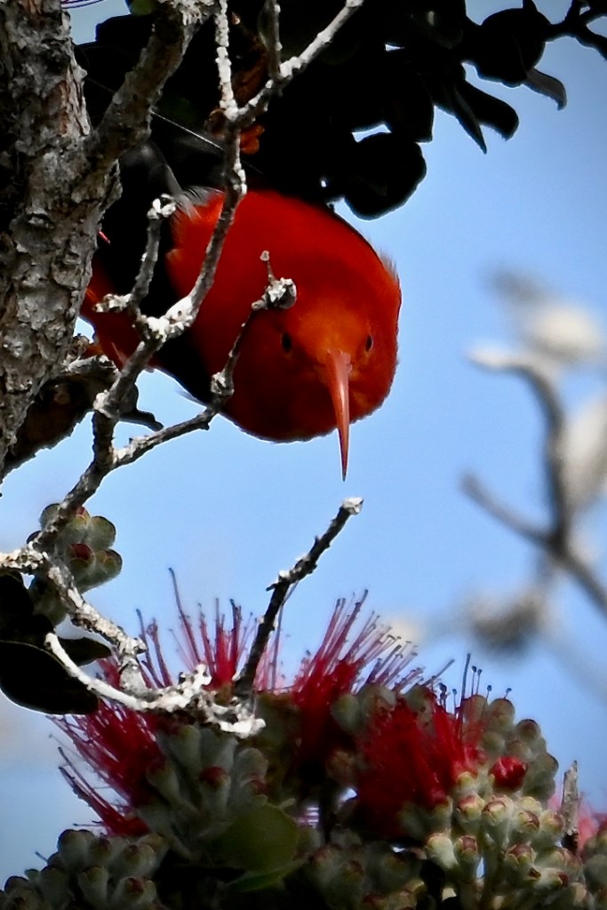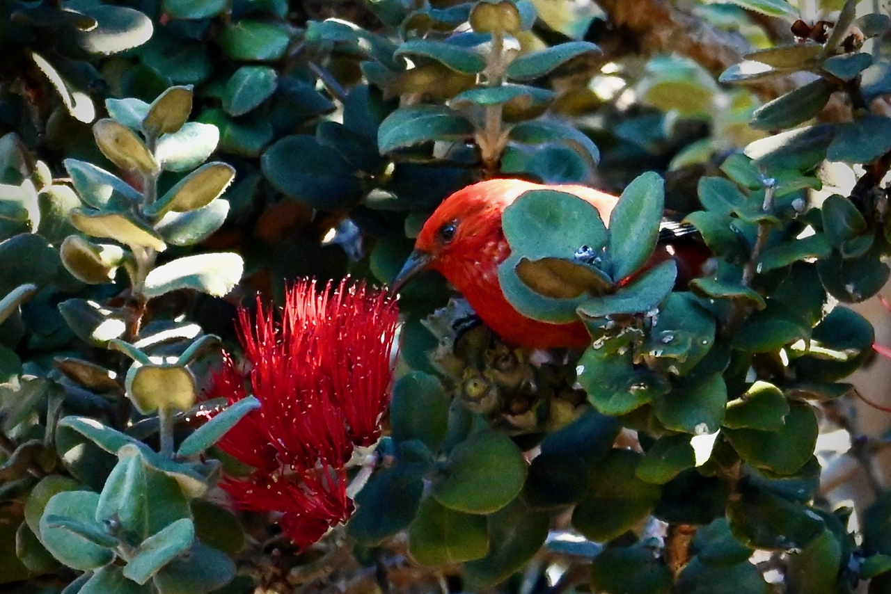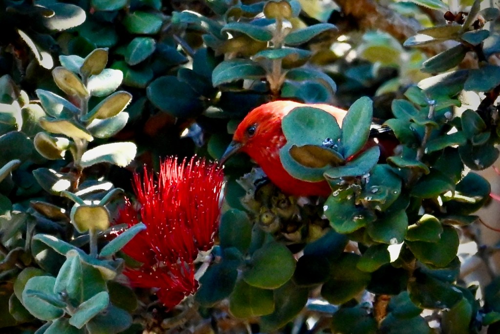 There are plenty of examples if you journey around the island. He found an i’iwi, who said, “Keep it small, less than ten. And chase everybody else away. Speaking of which, ‘apapane, it’s time you got out of here!”