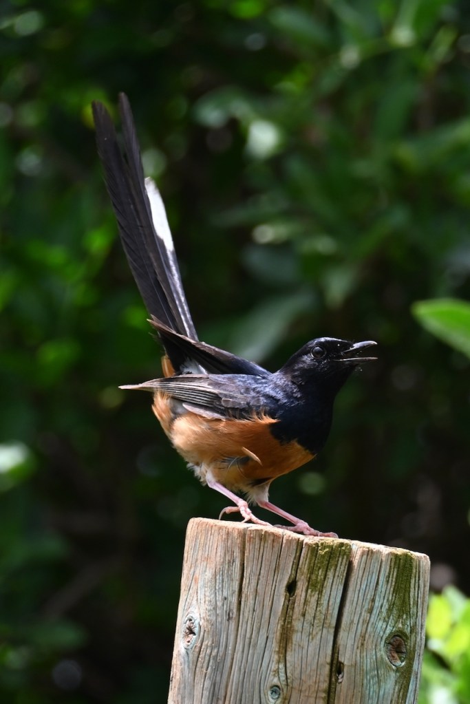 The myna, on the other hand, is not a mellow bird. They sing a fair amount, but they also screech and argue. They’re pretty sociable with one another, and one moment everybody is happy and content, and the next moment everybody is hollering at one another.