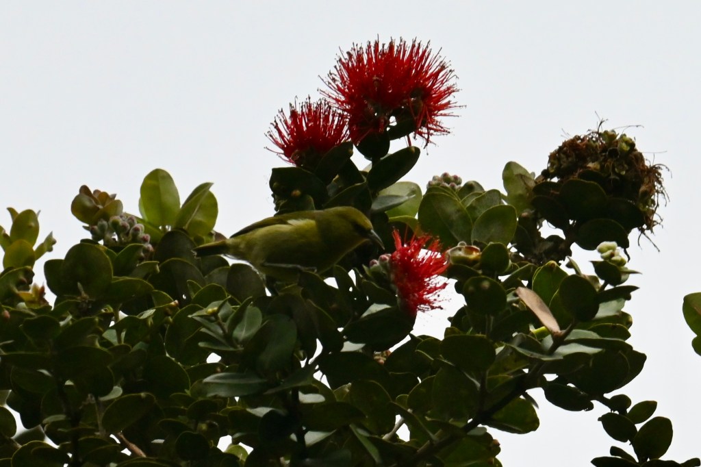 I not only pointed my camera at birds, I made plans to go photograph them. Rather foolishly, I promised a friend I’d take a picture of a bird I hadn’t seen in eight years (the i’iwi, a distinctive Hawaiian honeycreeper with a distinctive long curved orange beak). I got a photo, and I even liked it. I even saw (and got a bad photo of) a bird I hadn’t even heard of, the ‘akiapola’au, thanks to two birders who were seeking it by the trail.