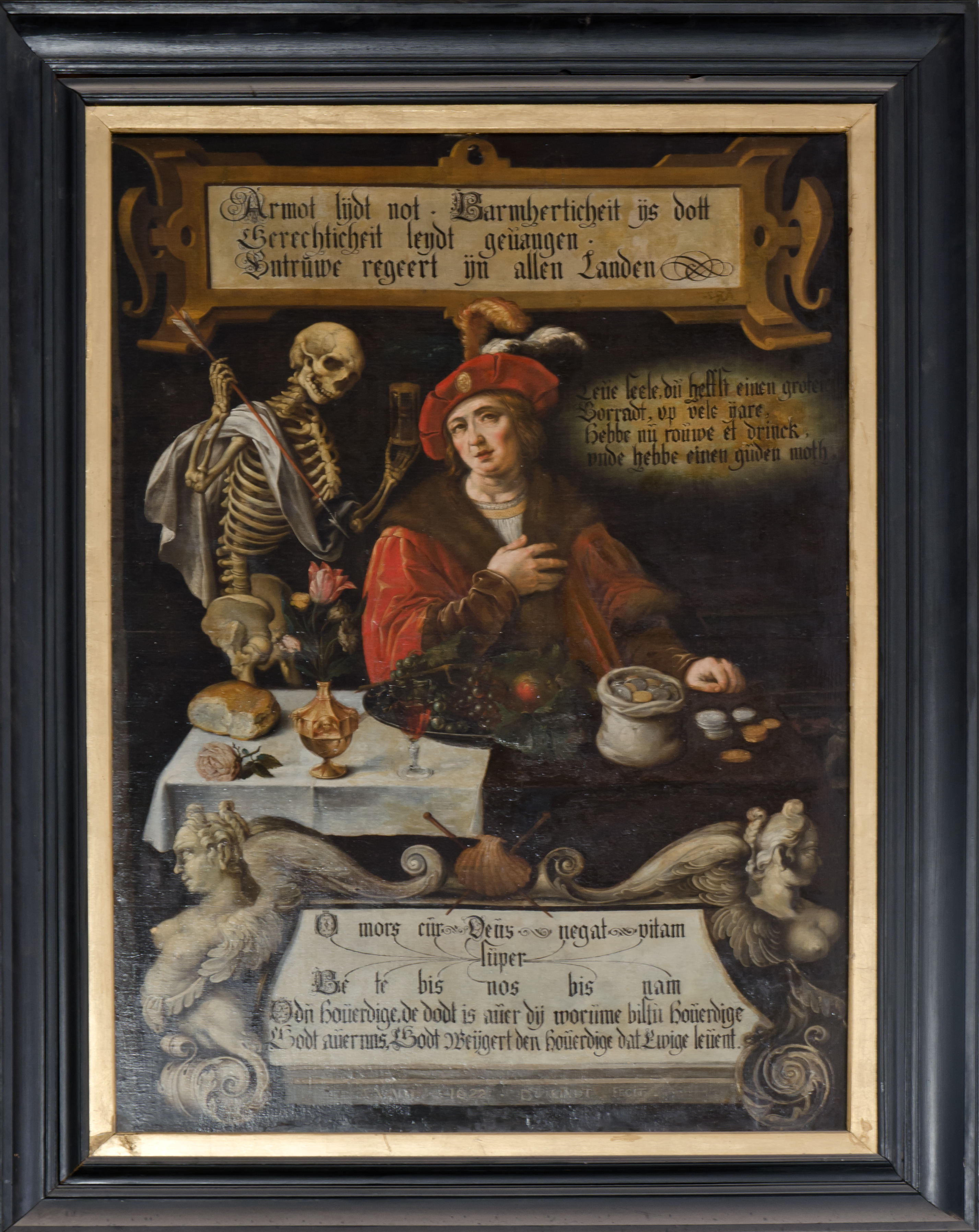 The image is Der reiche Mann und der Tod (The Rich Man and Death) by David Kindt (1622) – CC BY-SA 3.0, https://commons.wikimedia.org/w/index.php?curid=22079990.